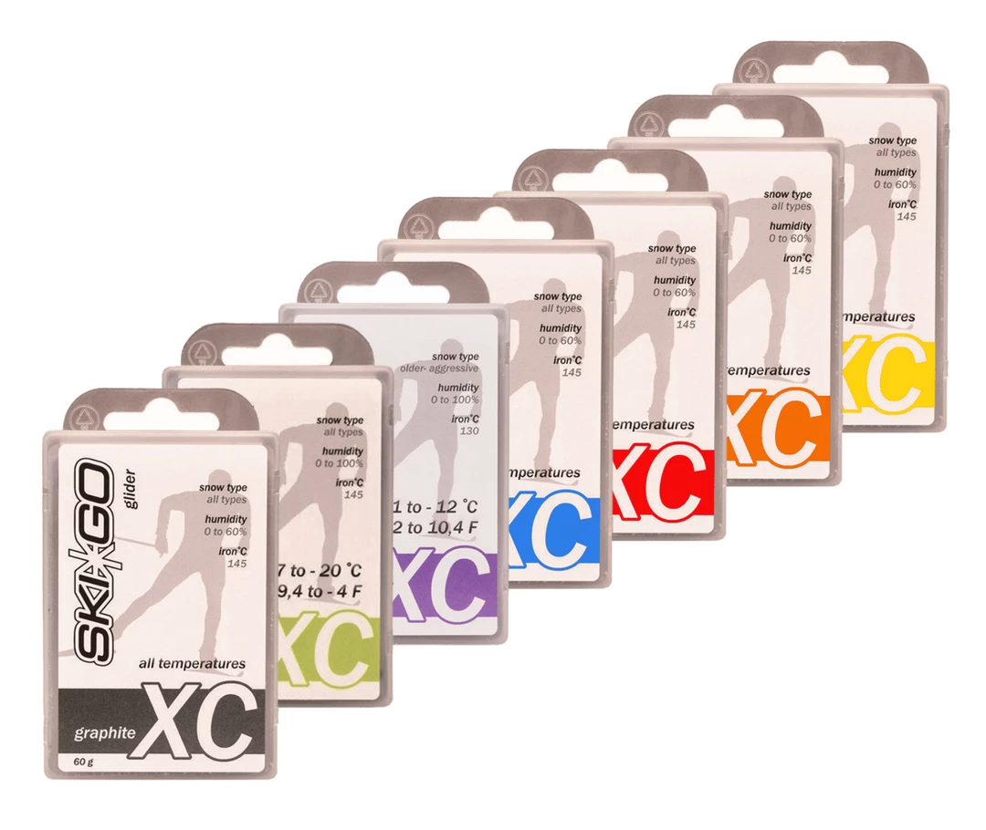A series of standard waxes for all temperatures and snow types. For humidity of 0 to 100%. Use XC Graphite as Basic wax.Â