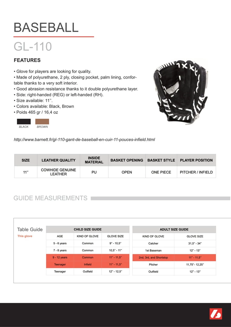 Playing comfort and multifunctional, a competition glove for good players, 9-12 years. Genuine leather, 2 foldings – semi – closed pocket. Very robust thanks to double leather layer and palm reinforcement. Very comfortable with very soft inside.